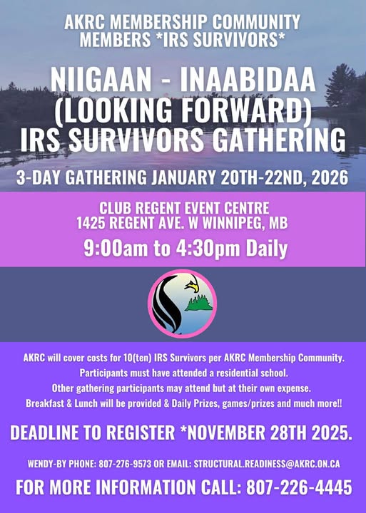 AKRC – NIIGAAN INAABIDAA (LOOKING FORWARE) IRS SURVIVORS GATHERING