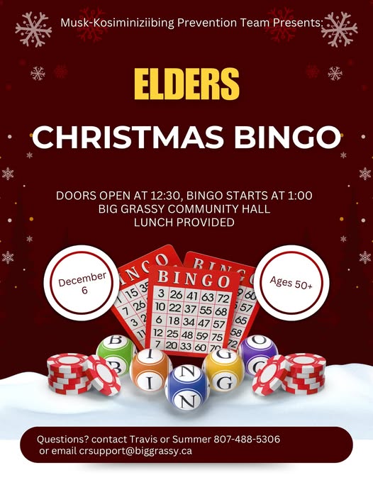 - Sat 12/6/2025: ELDERS CHRISTMAS BINGO - DECEMBER 6th - Doors Open at 12:30 Starts at 1:00pm View Poster on News & Events Page