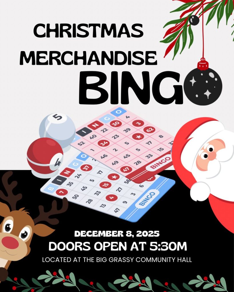 - Mon 12/8/2025: CHRISTMAS MERCHANDISE BINGO - DECEMBER 8 - DOORS OPEN AT 5:30pm View Poster on News & Events Page