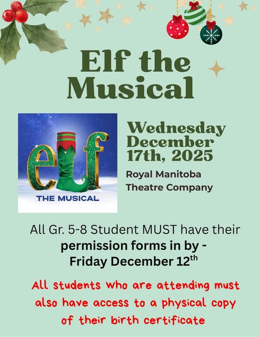 PEGAMIGAABO SCHOOL NEWS – GR. 5-8 STUDENTS TRIP FOR ELF THE MUSICAL