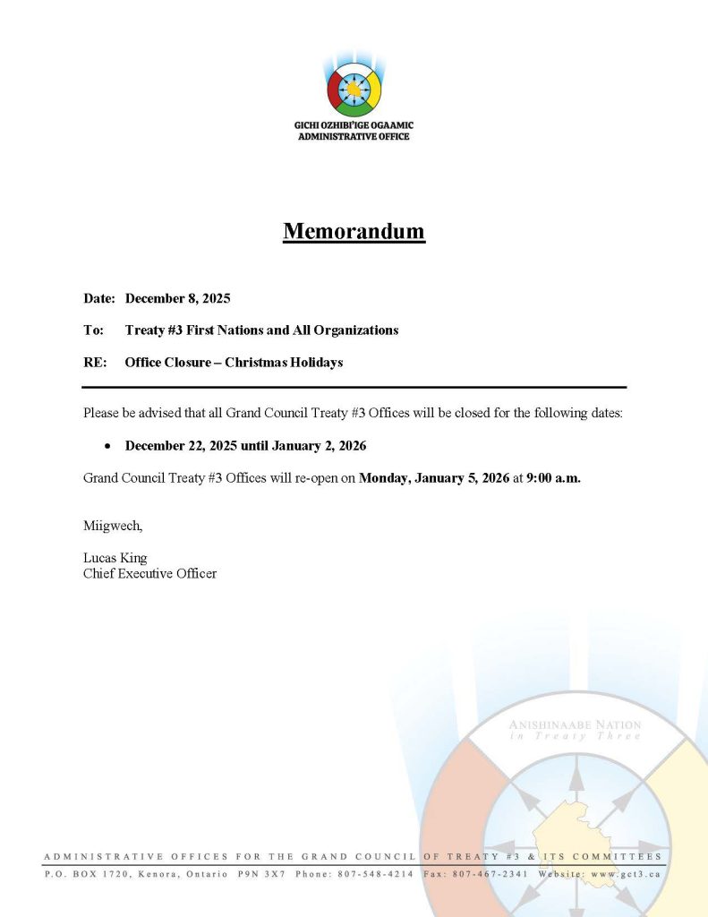 GRAND COUNCIL TREATY #3 MEMO – OFFICE CLOSURE