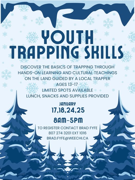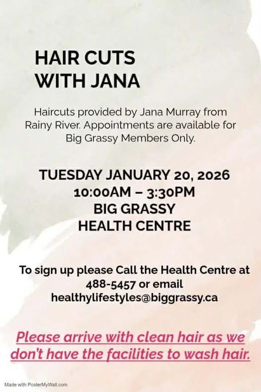 • Tue 1/6/2026: MUSK-KOSIMINIZIIBING PREVENTION TEAM PRESENTS 2026 ICE FISHING CHALLENGE January 6 - March 23, 2026 For info contact Travis: landbasedcoordinator@biggrassy.ca