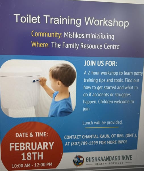 • Wed 2/18/2026: TOILET TRAINING WORKSHOP FEBRUARY 18 10am-12pm Family Resource Centre 700 Tobacco Rd.