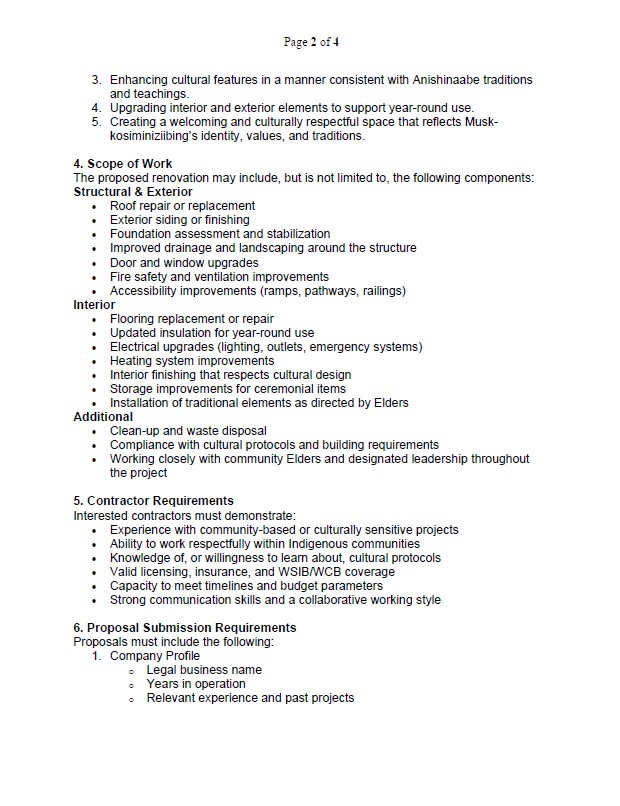 Musk-kosiminiziibing invites qualified individuals, firms, and Indigenous-owned businesses to submit proposals for services as outlined in the current Request for Proposal(s).